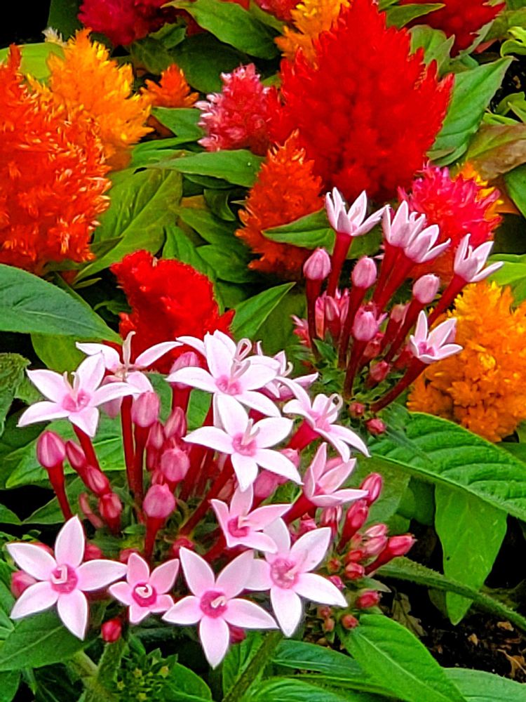 1枚目ペンタス、2枚目タチアオイ、3枚目アガパンサス、4枚目アメリカンブルー、5枚目カンナです🤗🍀