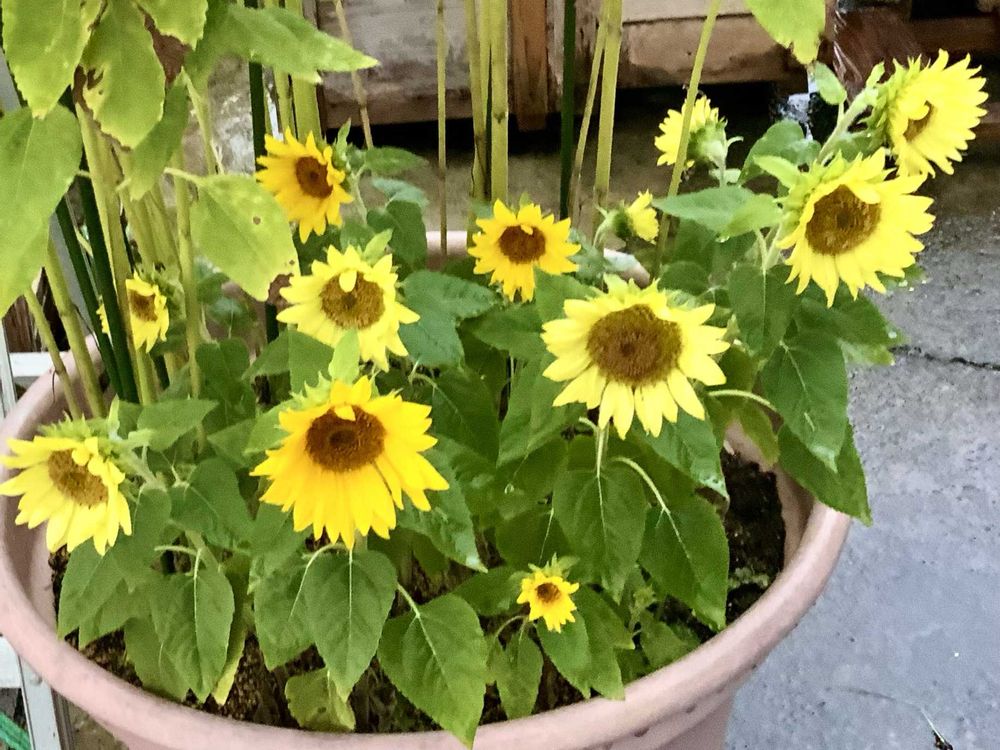 大きな植木鉢に2種類のひまわりの種子を蒔いて花が咲くのが楽しみでした😊🌻🌻🌻