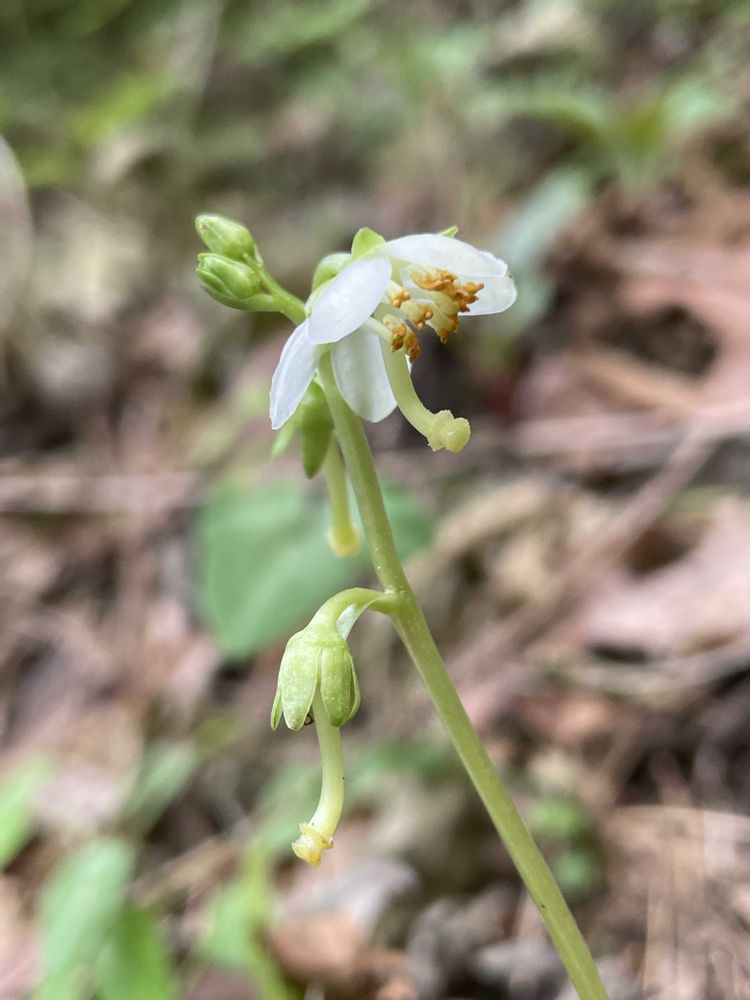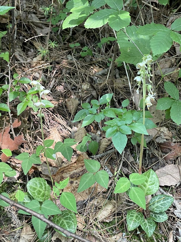 こちらにはイチヤクソウと一緒にたくさん見られます。ここは標高900mほどですが、意外と林道に入る手前でポチポチ咲いていました。