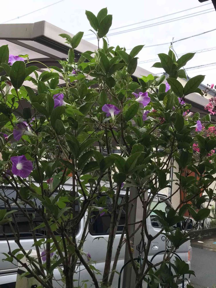 銀木犀の木に朝顔が絡んで綺麗に咲いてたので...😊📱