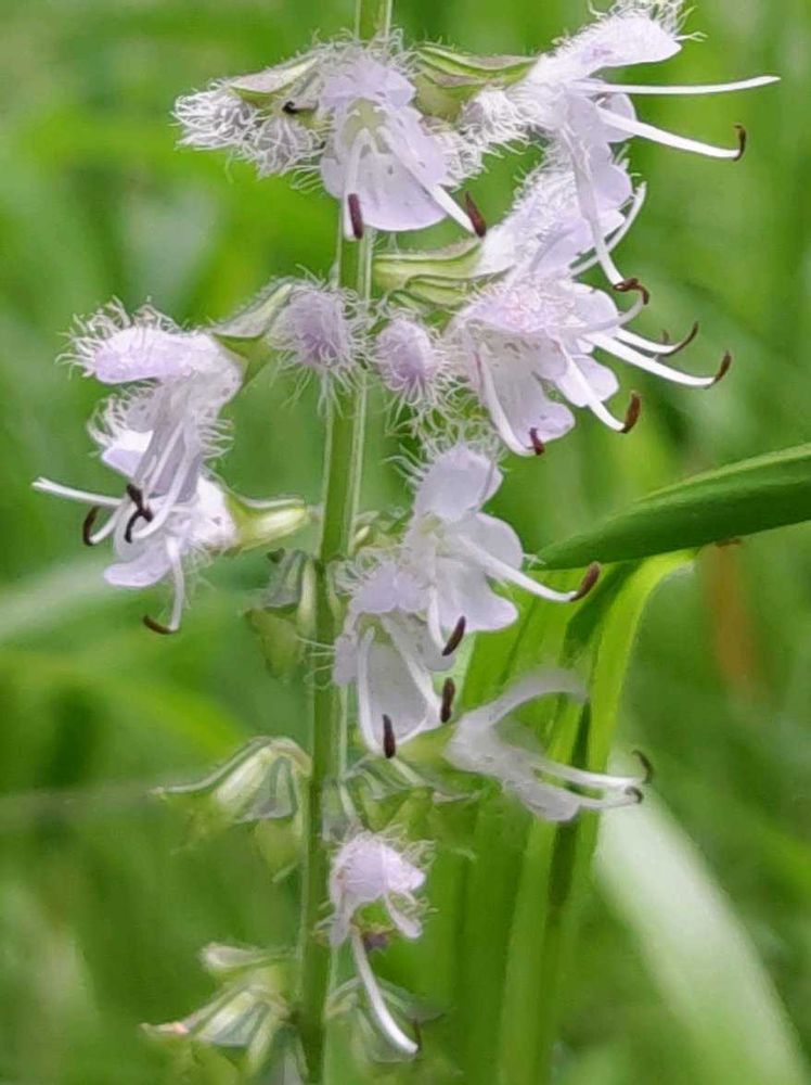 アキノタムラソウに似ていますが、花冠の上弁の外側に長い毛があり、雄しべが長く花の中央に突き出すようになるのが特徴。