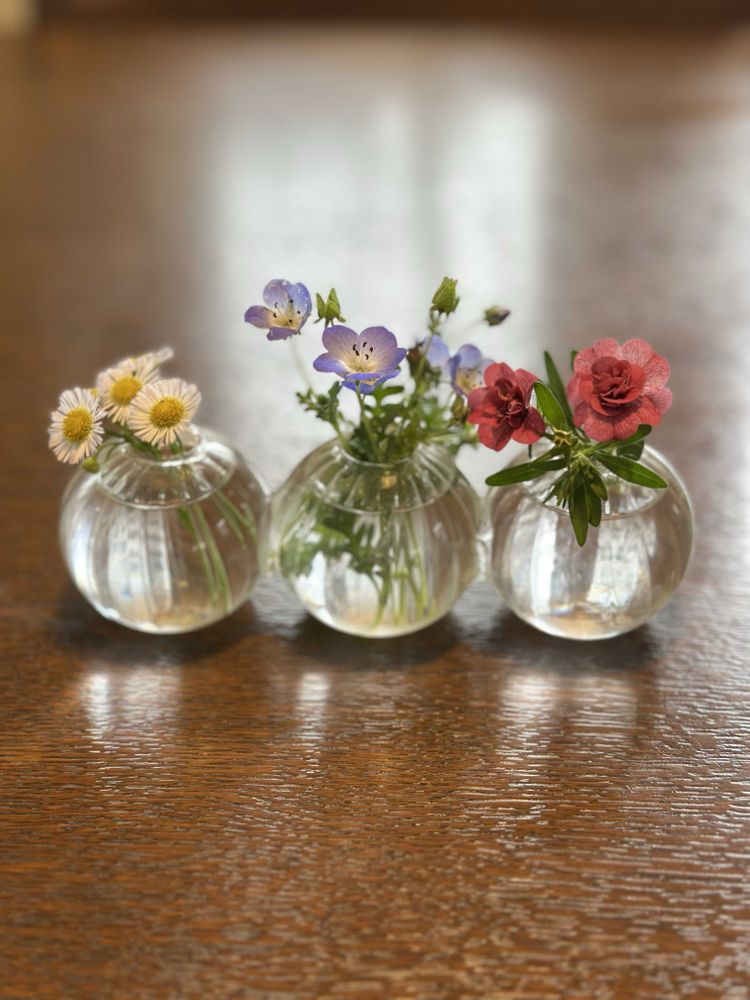 庭に咲いているお花をちょこっと摘んで食卓へ。ながめてホッコリ☺️