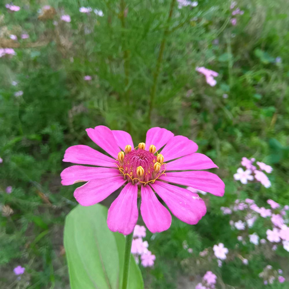 我が家の野っぱらにこぼれ種っ子のジニアが咲き始めました🩷