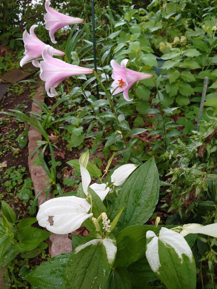 5️⃣ハンゲショウとテッポウユリ花壇で綺麗でした😊💕