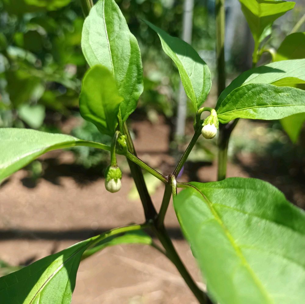 伏見甘長唐辛子も、花が次々咲き、実が取れ始めました。