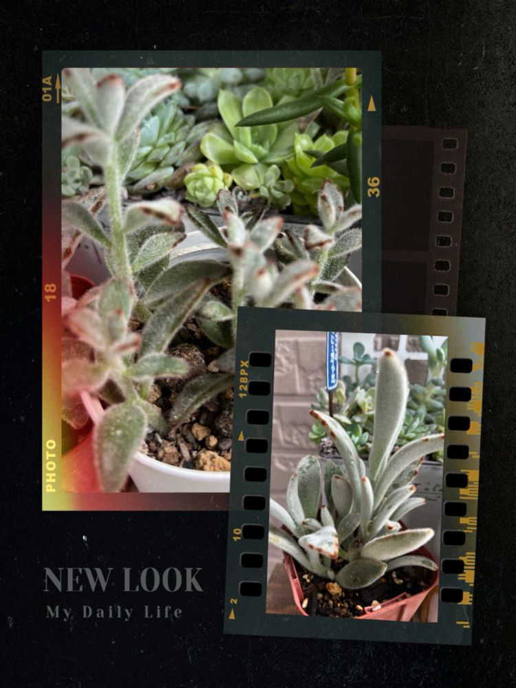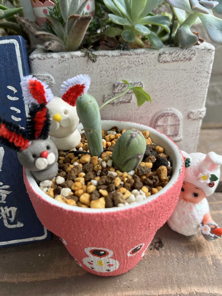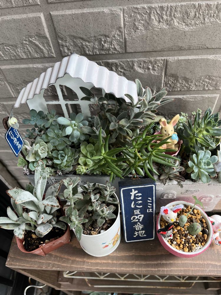①③寄せ植えの中の黒兎耳🐰が、また屋根に届いてます。良く伸びるなあ。これは徒長ですか?