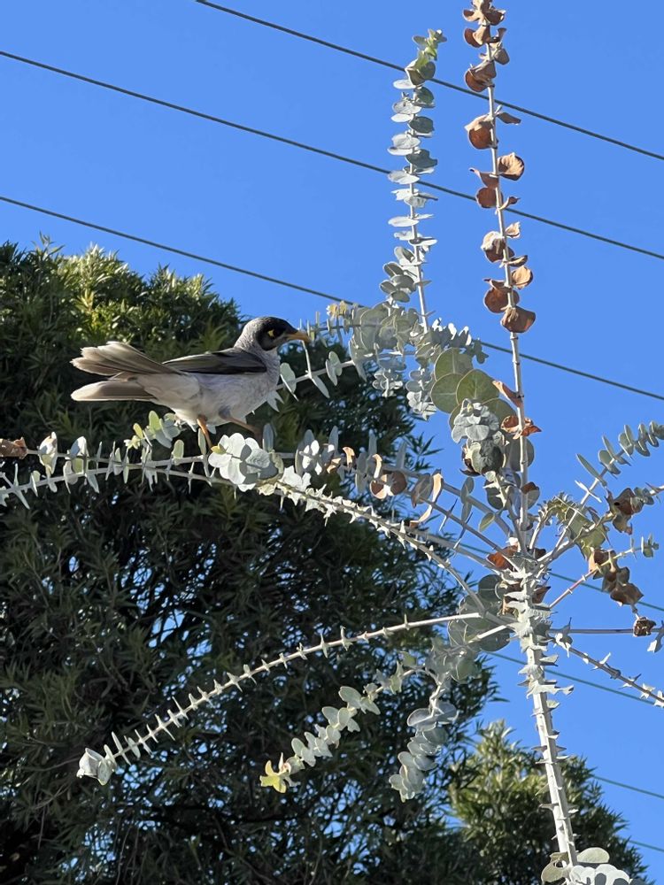 🦜The bird in the image is a Noisy Miner (Manorina melanocephala)