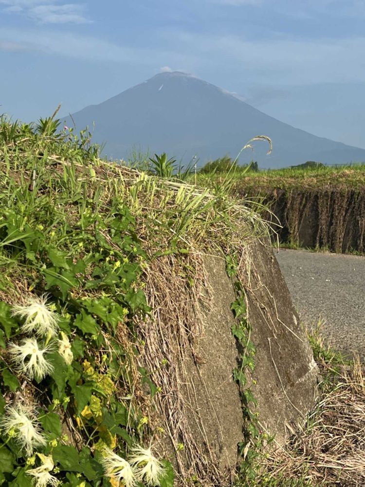 富士山と烏瓜の白い花(田んぼの土手に咲く花)