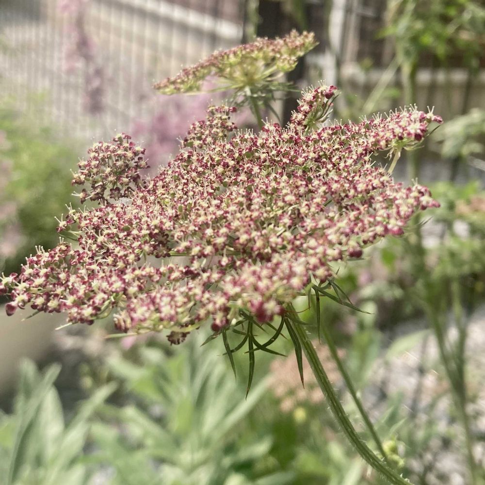②渋色のレースっぽいお花が素敵で、オルラヤより少し大きいくらいかな〜と思い狭い花壇に植えた結果、予想以上に大きく育って困惑😧のブラックレースフラワーさん。あなたは広いお庭が似合う子なのね…😅