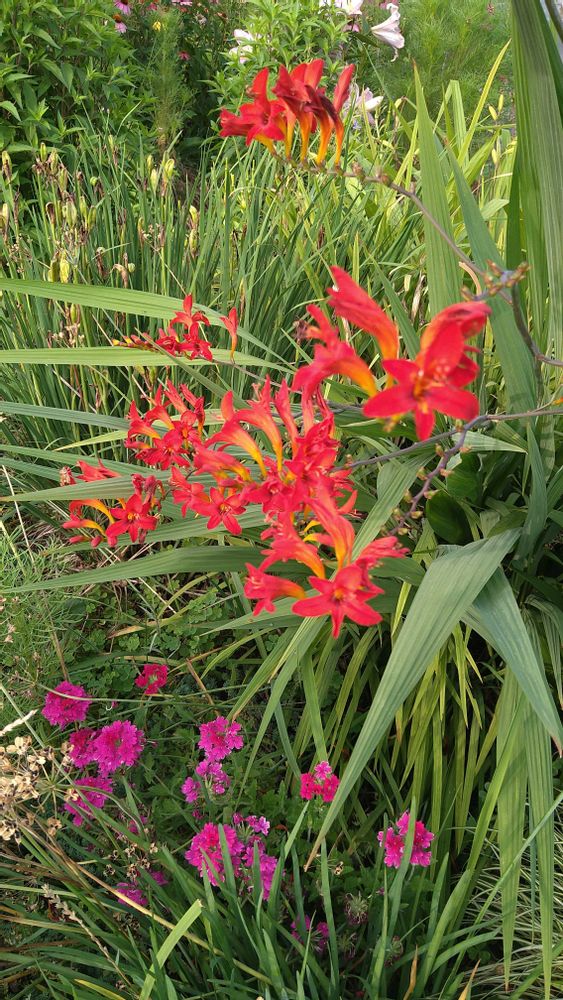畑でオレンジに続いて赤いヒオウギが鮮やかです🌱