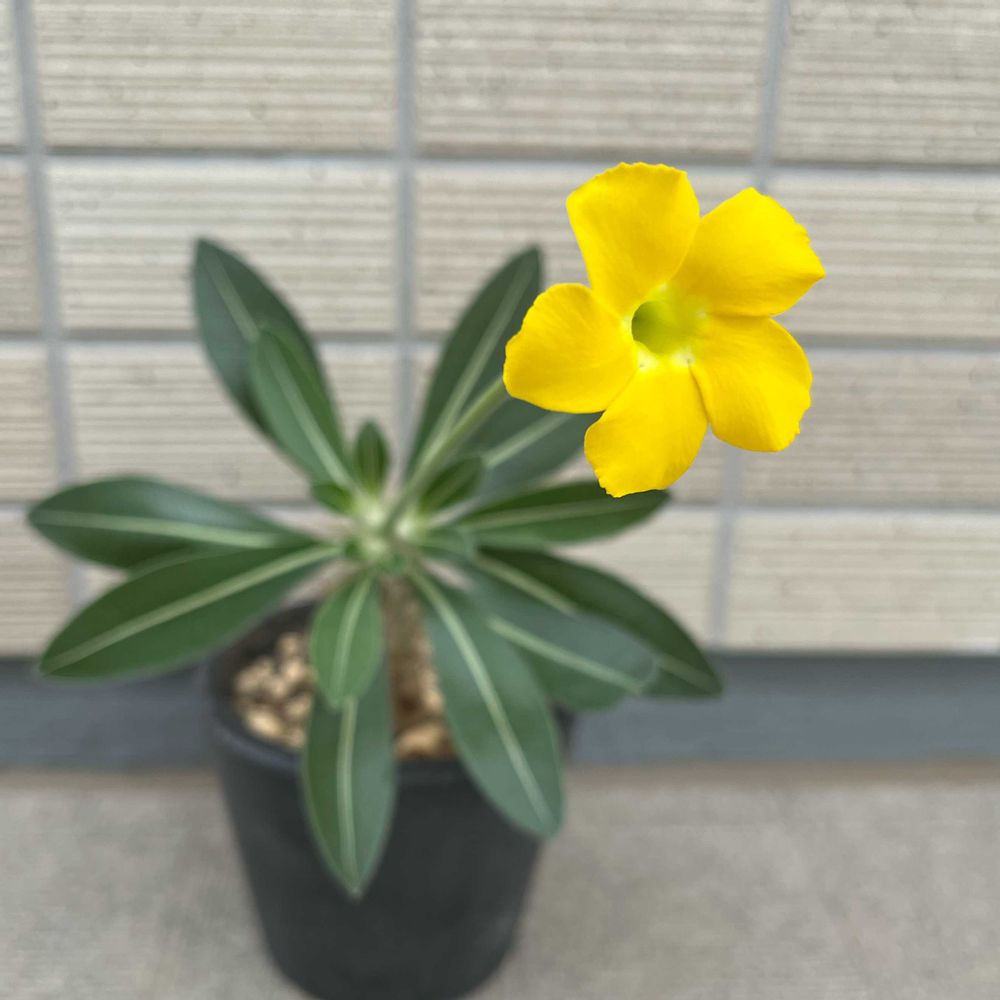 我が家で一番小さいパキポディウム。初めて花を咲かせてくれました。黄色が鮮やかです。