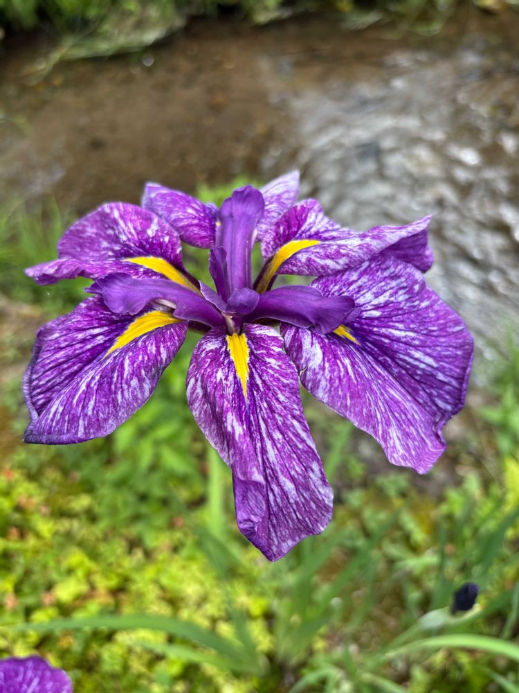 庭の川ふちに咲くハナショウブが綺麗でした💜