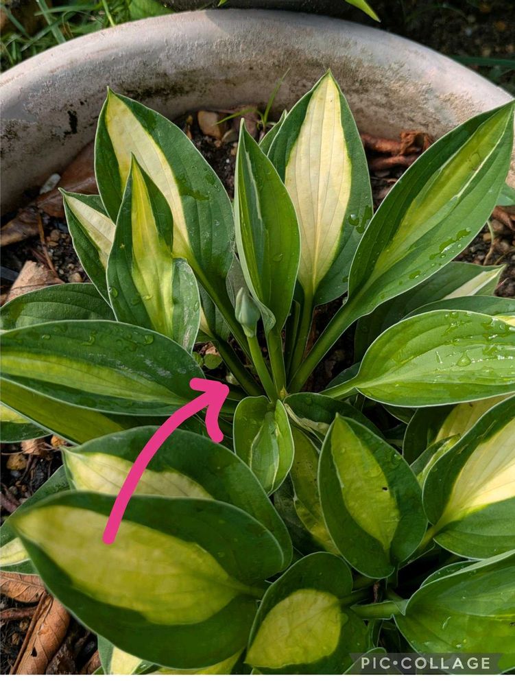 ホスタ 鉢上げして日に当てたら、1年ぶりに花芽がつきました。