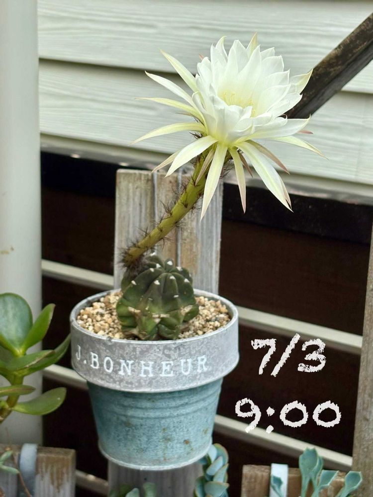 花芽がついたと思ったらぐんぐん伸びて、深夜0時にはまだ開いておらず、深夜1時に開花。