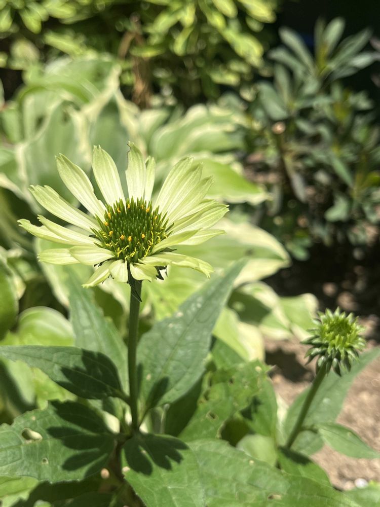 グリーンのエキナセアグリーンジュエル、グリーンに変化したのでしょうかーアナベルもステキですネー🎶💚🤍💚