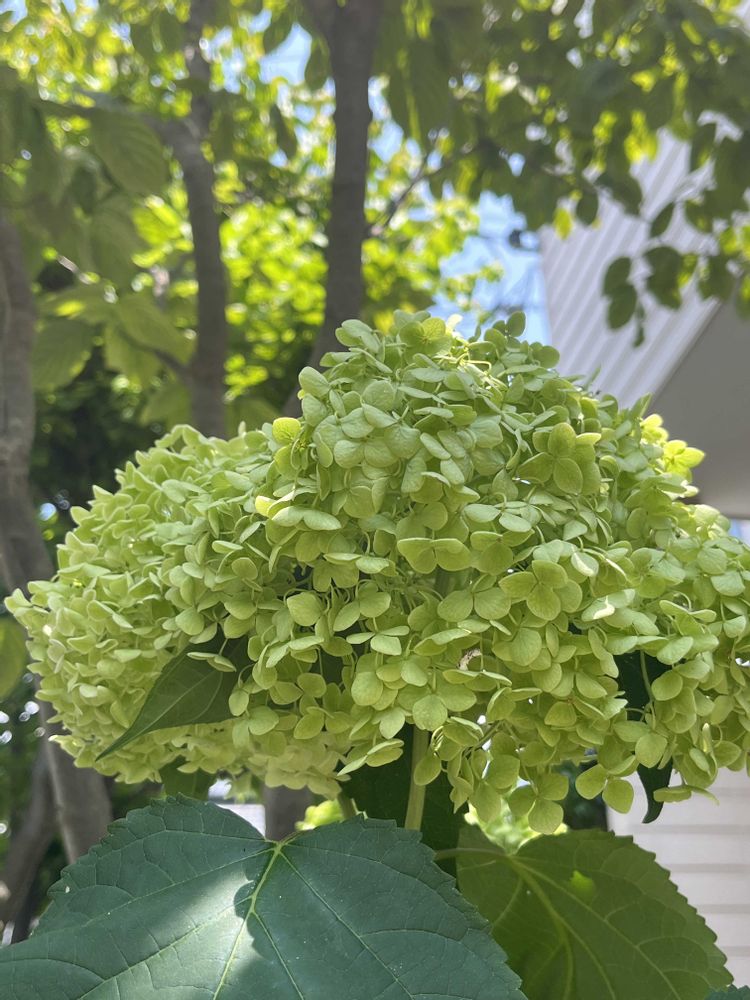 アナベル、咲きはじめはグリーンで、真っ白になり、またグリーンになっていきますよ💚→🤍→💚😊