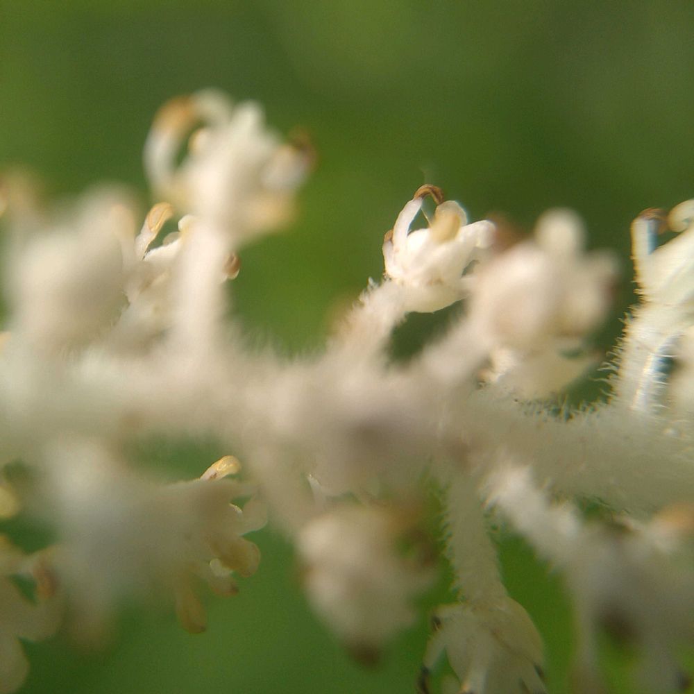 付け根から総花序が垂れたばかり
