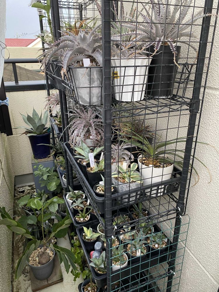 見てのとおり、鉢底給水なんて無理〜なんですが、我が家のエステべシー…たぶん奥の棚の二段目に居るっぽい💦