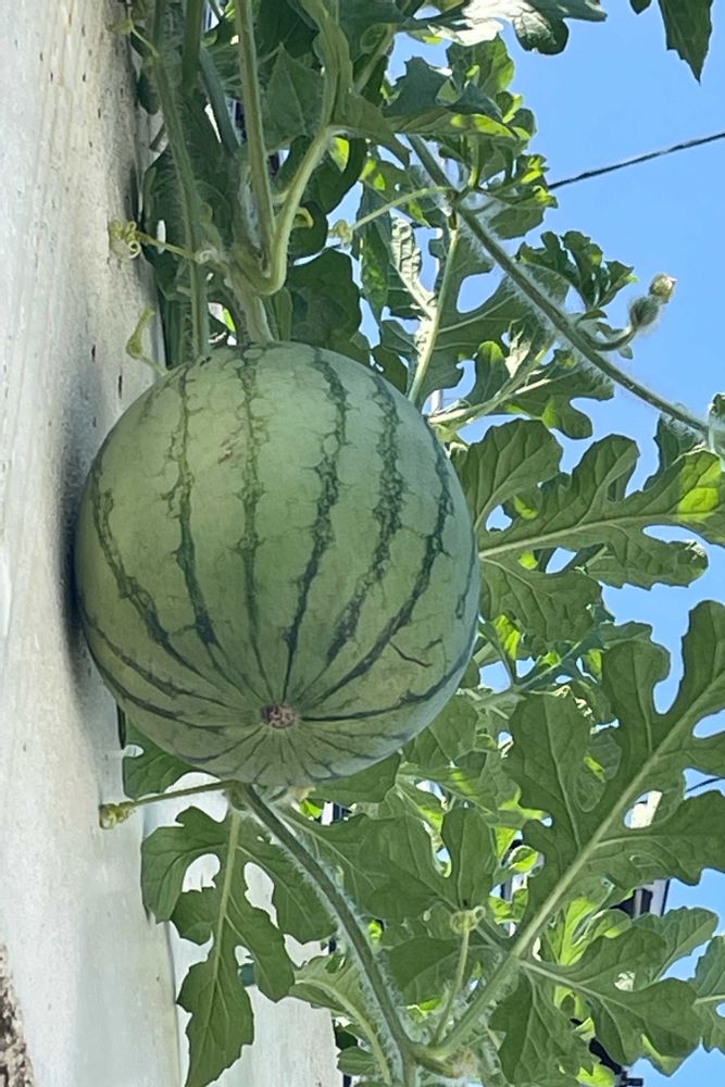スイカのカラス避けは、スイカにネットを被せるのが手取り早いかな?