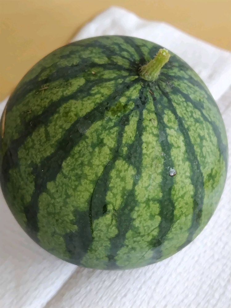 雨☔の多い時期に成長始め つかの間の晴れ🌞に陽の光を当てて ほとんど 傘で育った小玉スイカ🍉ちゃんです😅💦