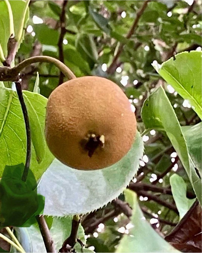 梨の実も今頃はうぶ毛があってキウイみたいに見えますね🥝摘果した実を貰ったら間違えそう😅