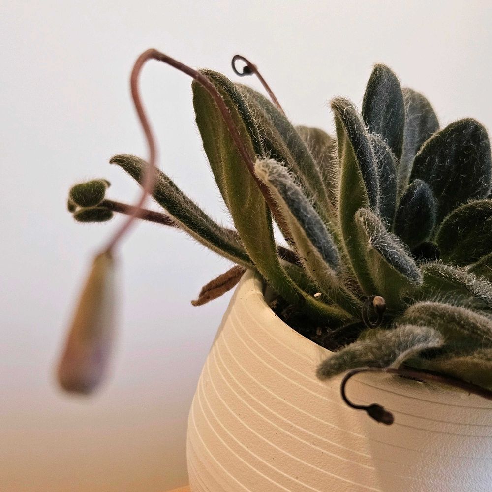 確かに、セントポーリアの肉厚で毛が生えたような葉と似てる。セントポーリアは葉挿しに失敗😅株分けで増えてます。