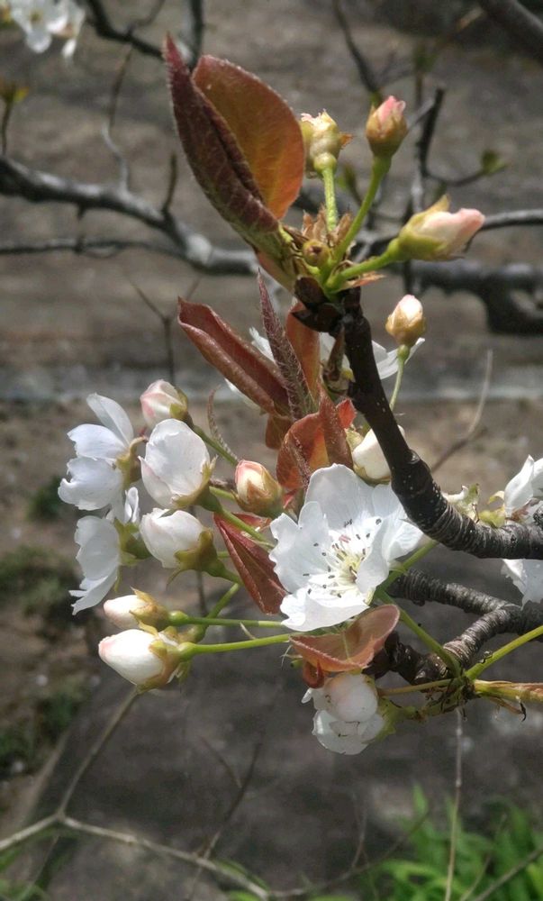 今日のお花ナシ(梨)は 4月の上旬に 葉っぱとほぼ同時に展開し 花を咲かせます。