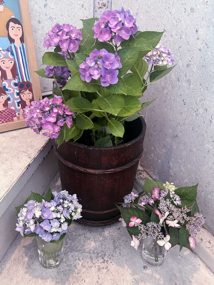 紫陽花💜🩵💗がまだまだ綺麗に咲いてるのね🥰💕