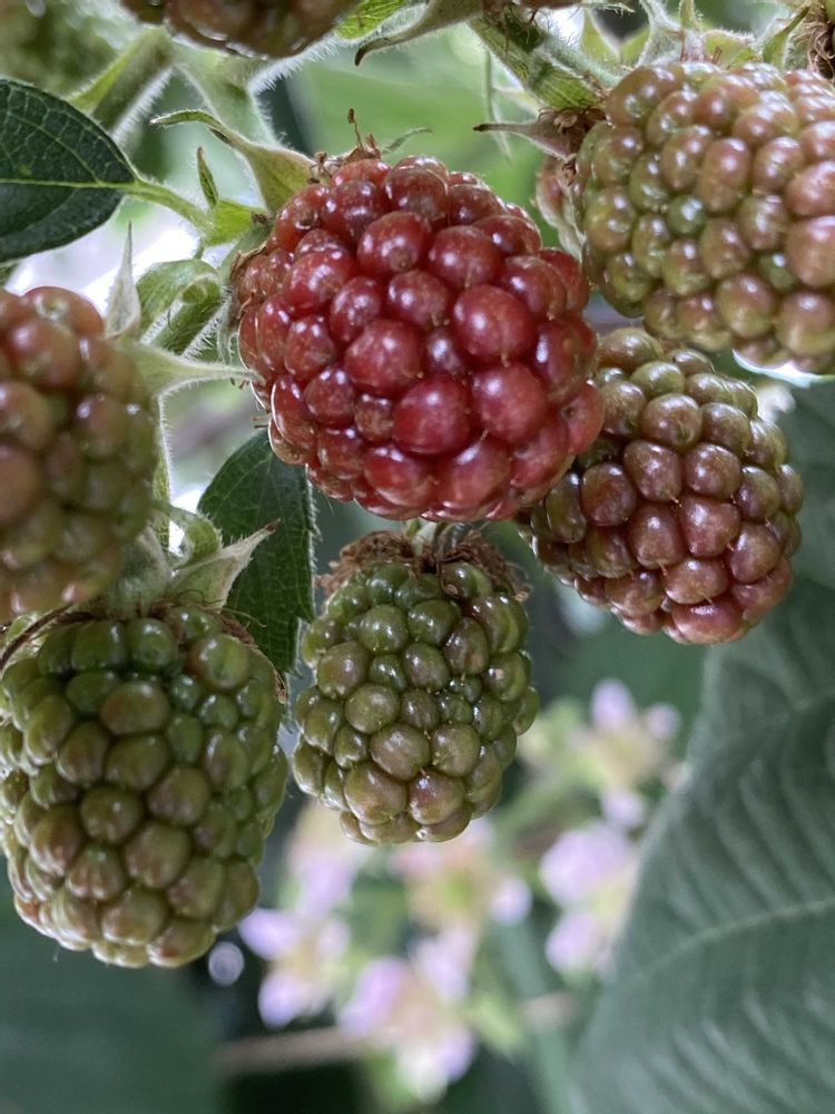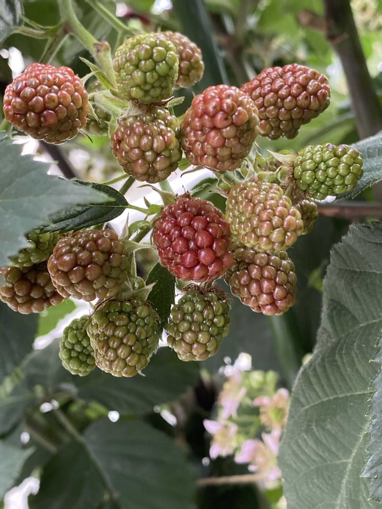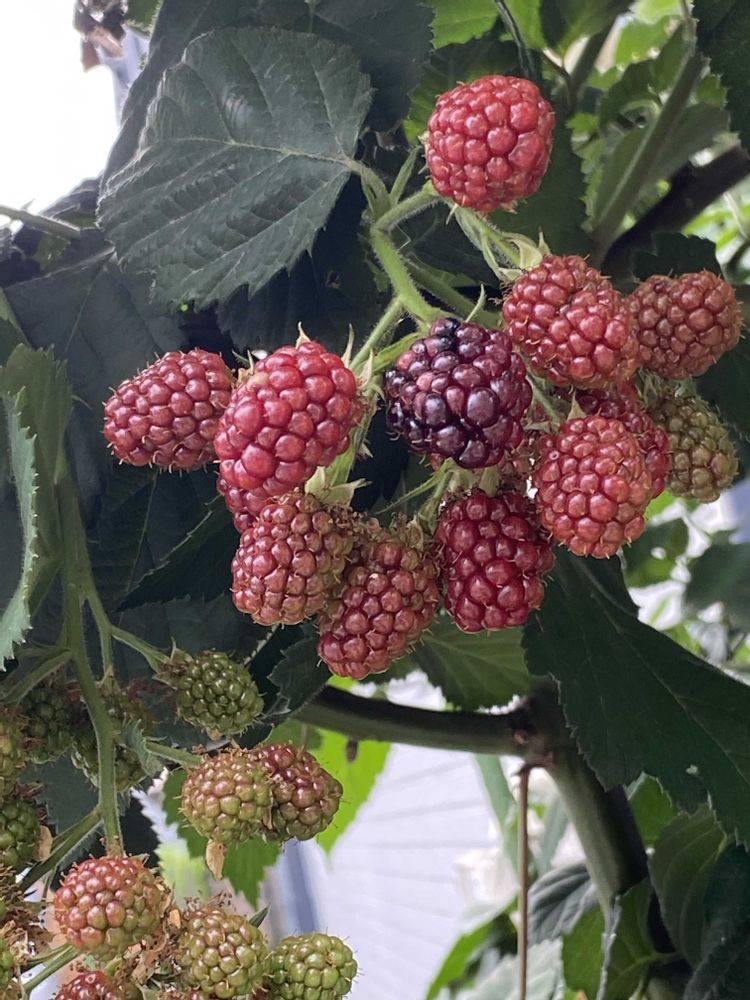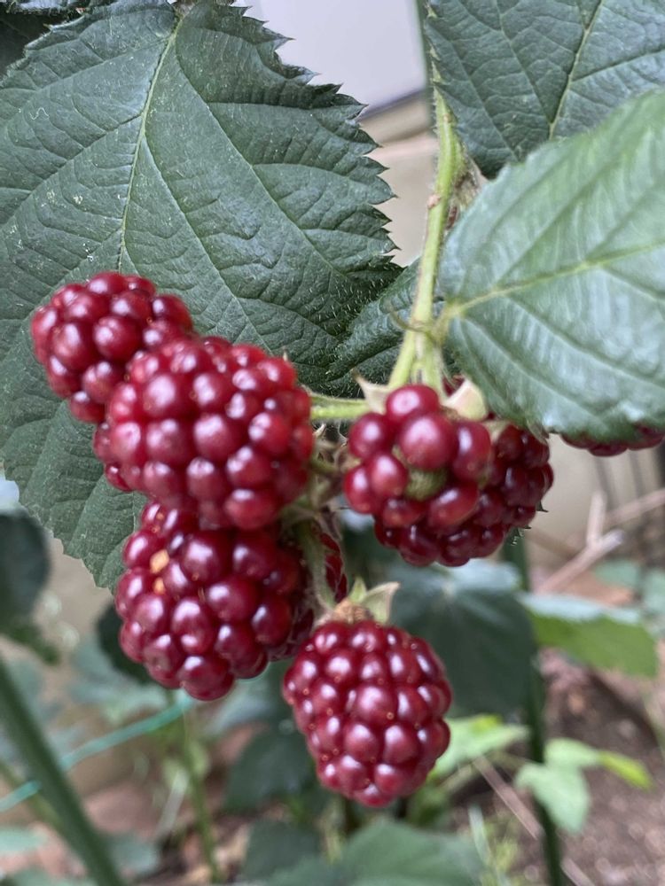 ブラックベリーがたわわに実っています。お庭で果実や野菜を上手に育てていらっしゃるご近所さんです。