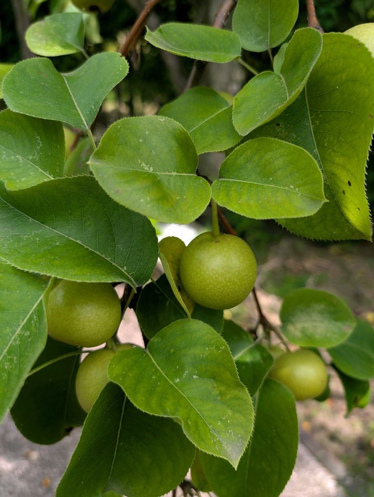 たまたま散歩コースの公園で見つけて、観察しています。ナシの日に投稿出来て良かったです😆🎶🍏🍏🍏
