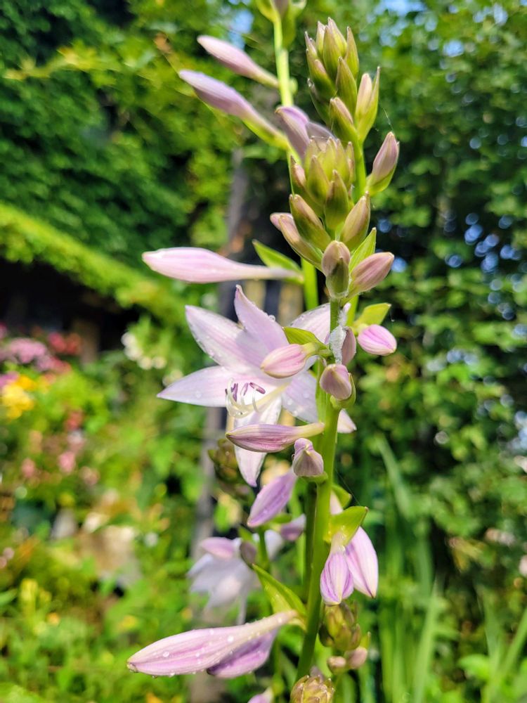 お花の名前は覚えられないけど、ギボウシさんのお花がピーんと伸びてピンク🩷🩷🩷のお花がステキですねー💓😊😊