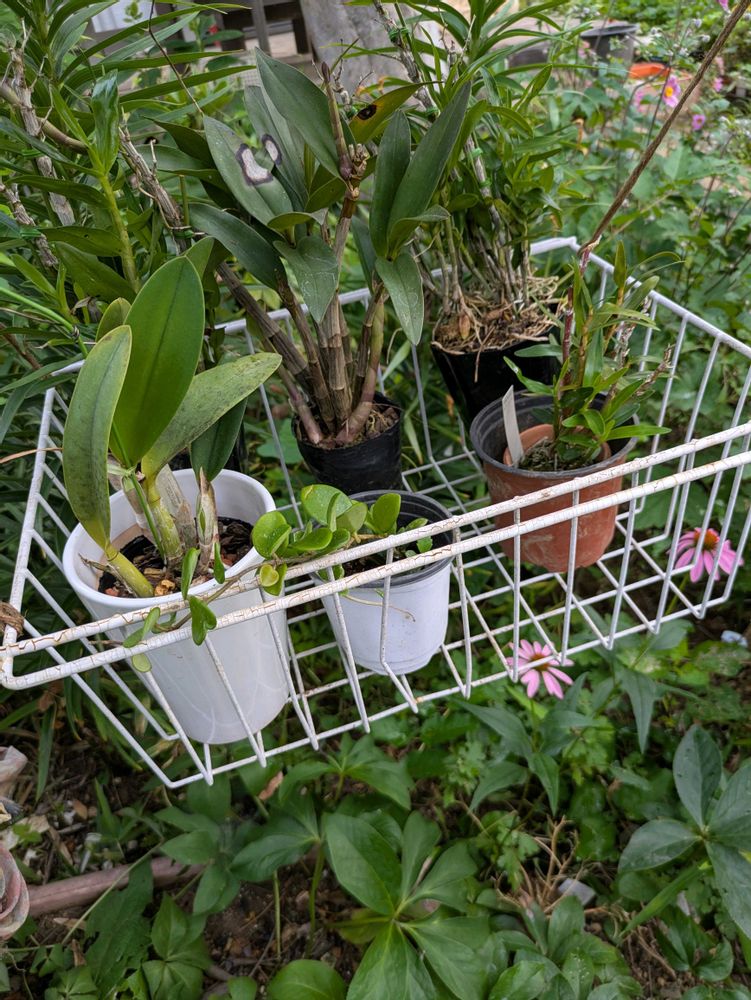 脱衣所のカゴの再利用、パーゴラの下に、まとめて吊るしておきました。