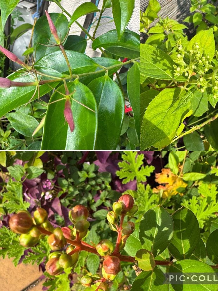 先日買ったアジサイの蕾が開き始めました。サルスベリやジャスミンエンジェルウイングの蕾。シコンノボタンとムクゲの花と蕾。暑さに負けず咲いて欲しい。白いルリマツリが涼しそう。金曜日の蕾達参加します。