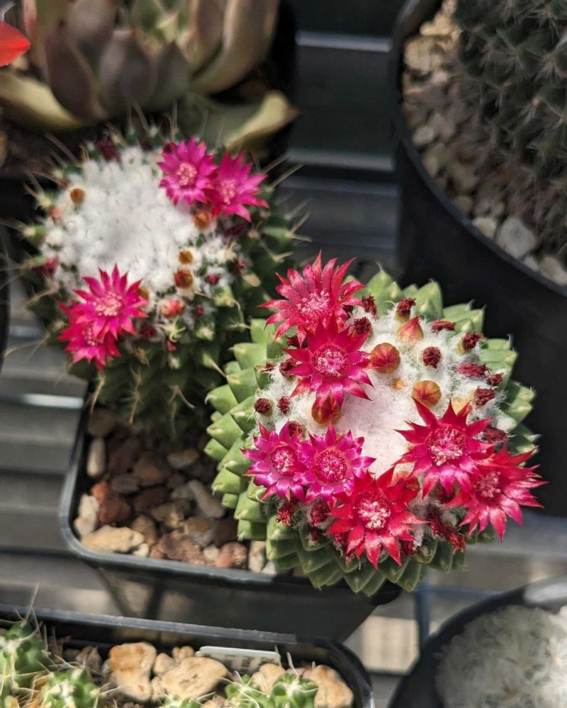 4.マミラリア属の誰さんでしょう。白いふわふわが増えてきた。閉じている時も可愛い。