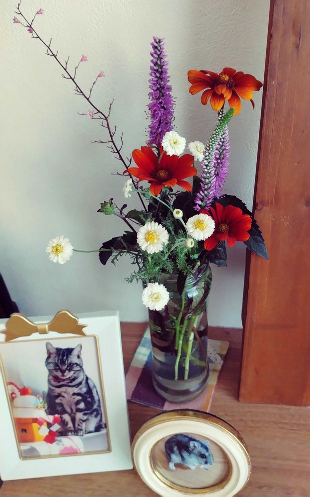 ガチガチの土をほっくり返し(笑)庭づくりを始め9年目?。愛猫が楽しめるお庭を目指してましたが主役不在となりました…四季の花々になぐさめられてます