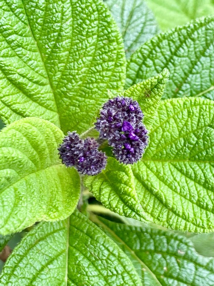 夏のお花ヘリオトロープさんはランタナのような葉ですね