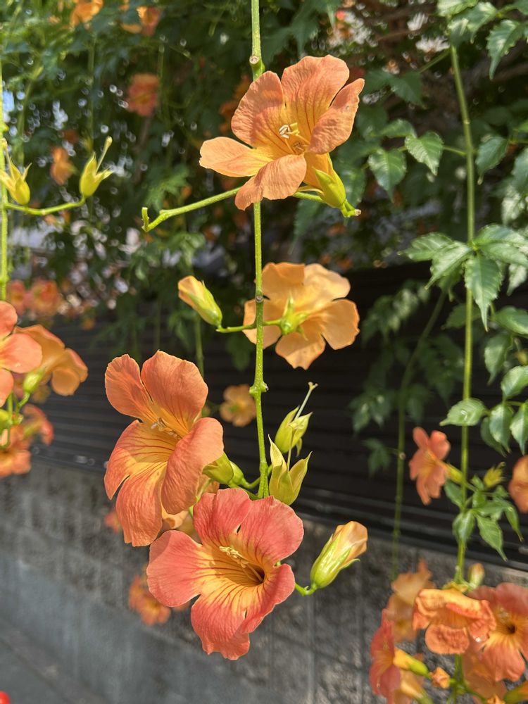 ノウゼンカズラのオレンジ色🟠が夏空に似合いますね🥰
