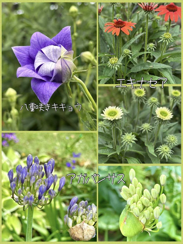 ❺我が家の蕾たち〜(八重咲き桔梗・エキナセア・アガパンサス)