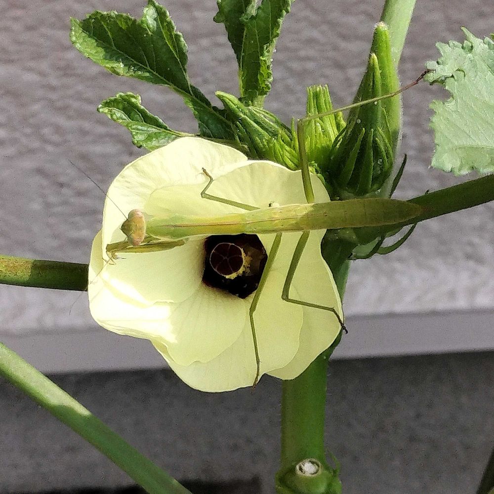 オクラの花は綺麗で収穫して納豆に乗せたりスープや味噌汁に