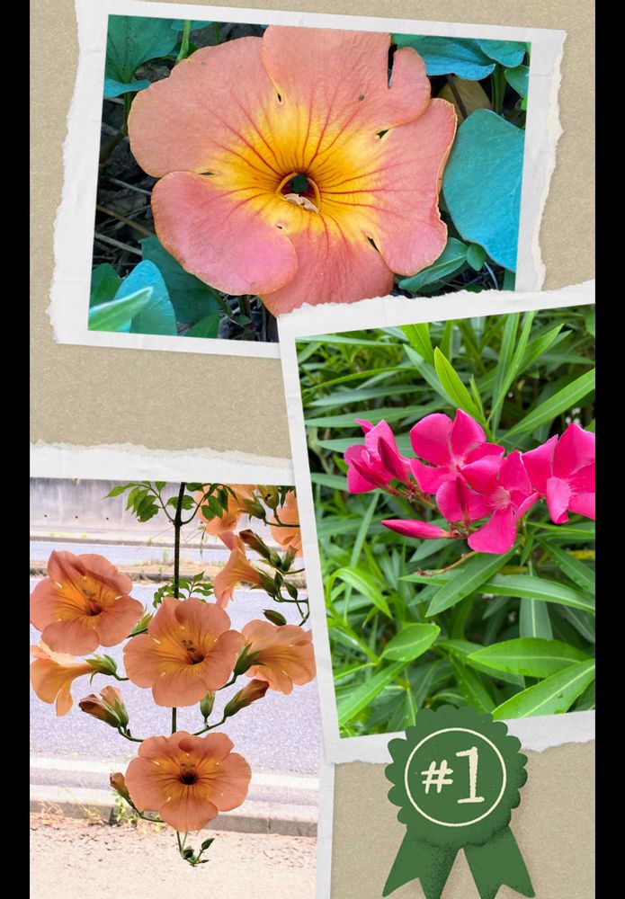 ノウゼンカズラ🧡🌿とキョウチクトウ🩷🌿
