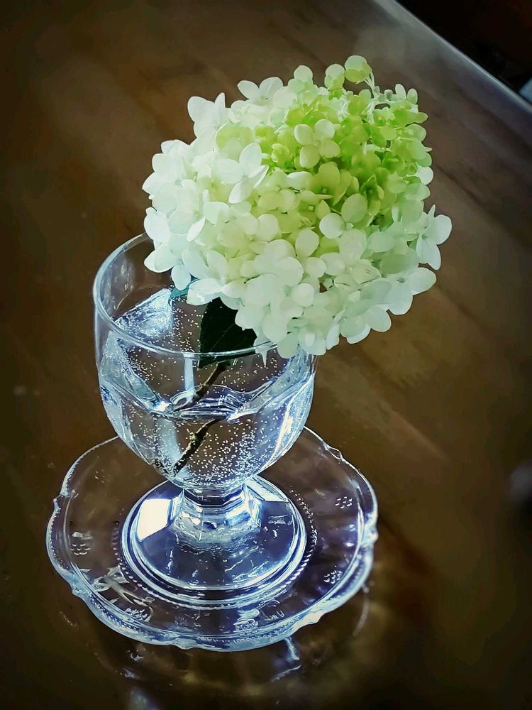 我が家のピラミッドアジサイは小ぶりなんです。だからこんな飾り方で…(๑•᎑<๑)ー☆