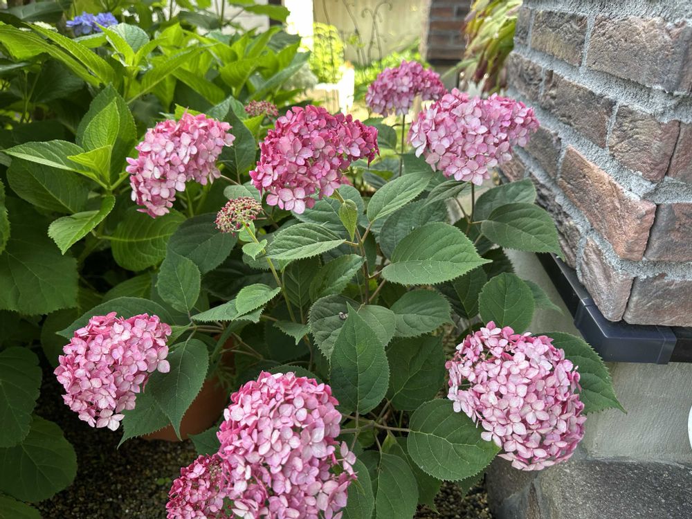 連日の猛暑で雨も降らないので、毎日の水遣りで咲いている紫陽花達🌳🏠