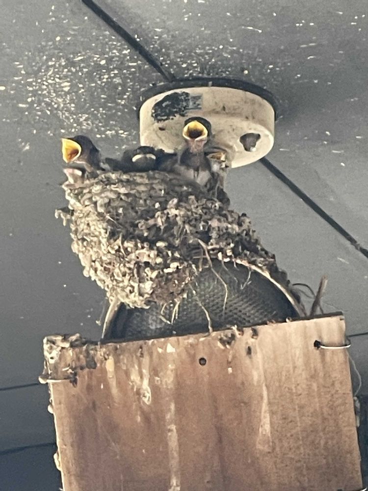近くの温泉♨️の玄関のツバメの赤ちゃん🐧