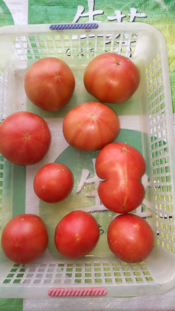 大玉トマトトマト🍅の収穫です✨🧺だいぶ色着いてきました。