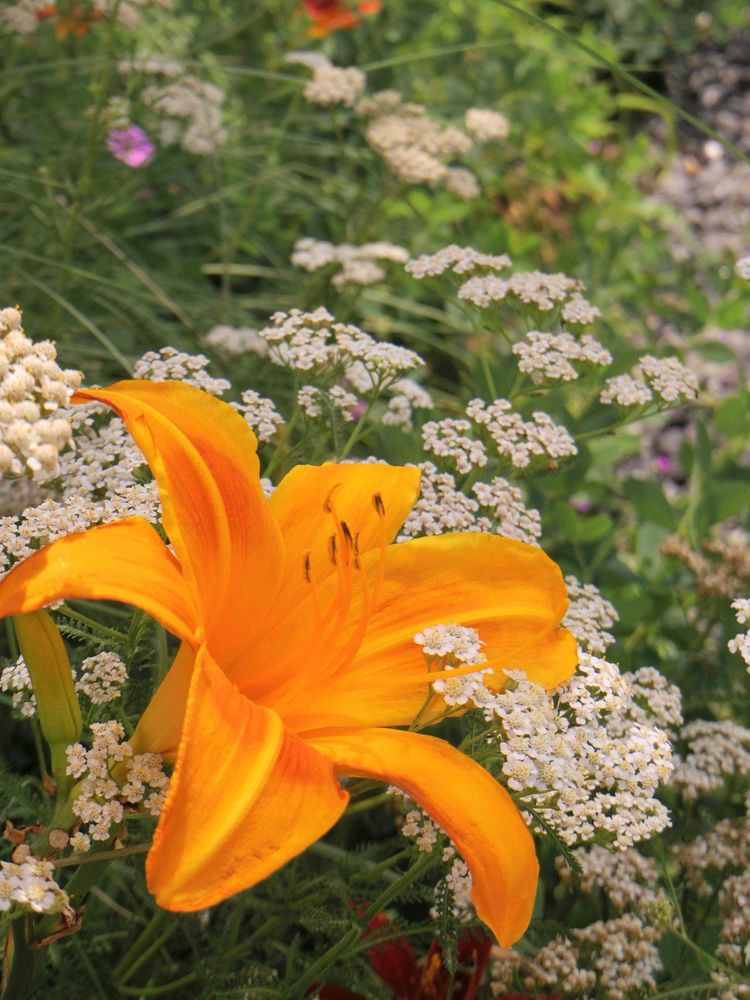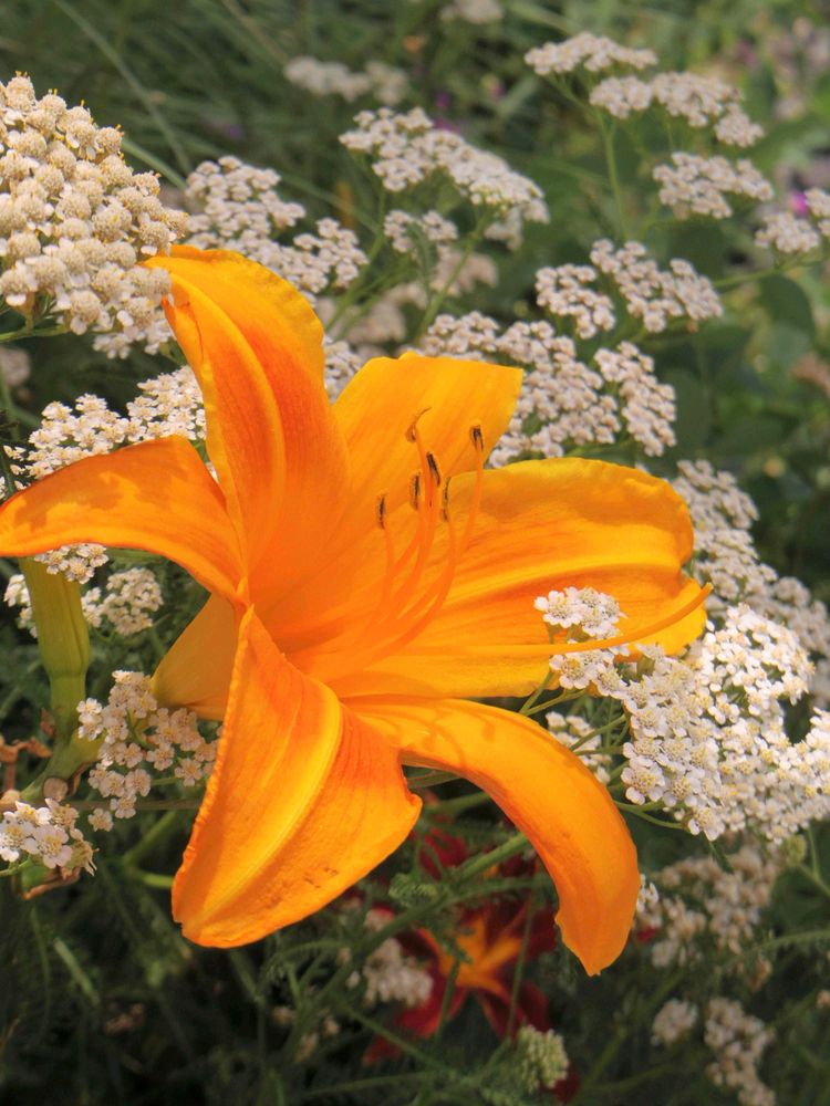 公園で、ヘメロカリスがセイヨウノコギリソウに包まれて咲いてました🥰
