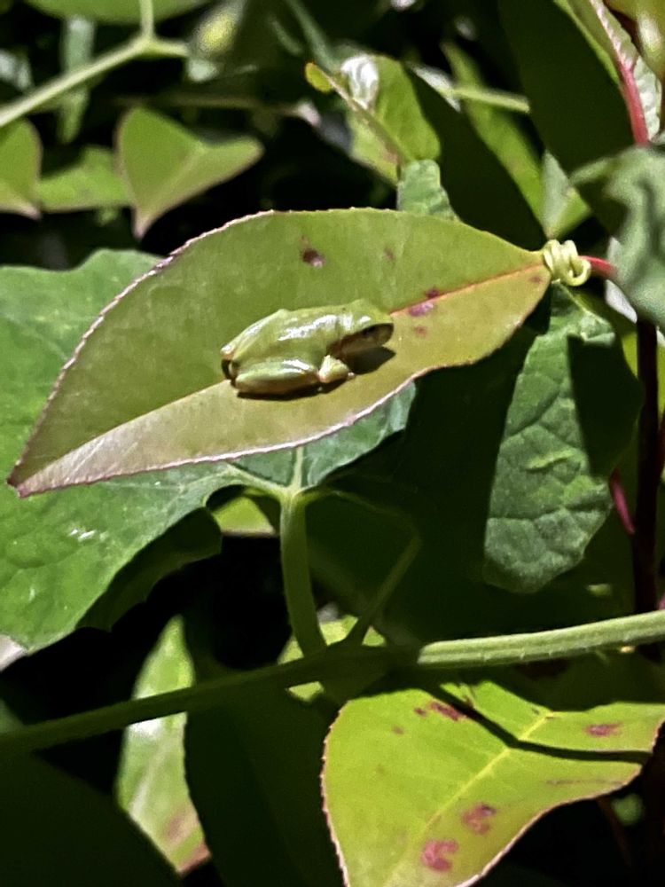 カエル君、スマホの🔦でウロウロしている間、ずっと私を見つめていたようです🐸😆