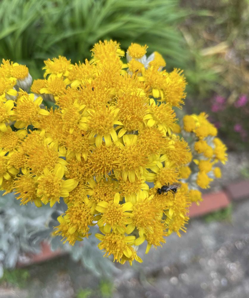 シロタエギクやっと花開きました