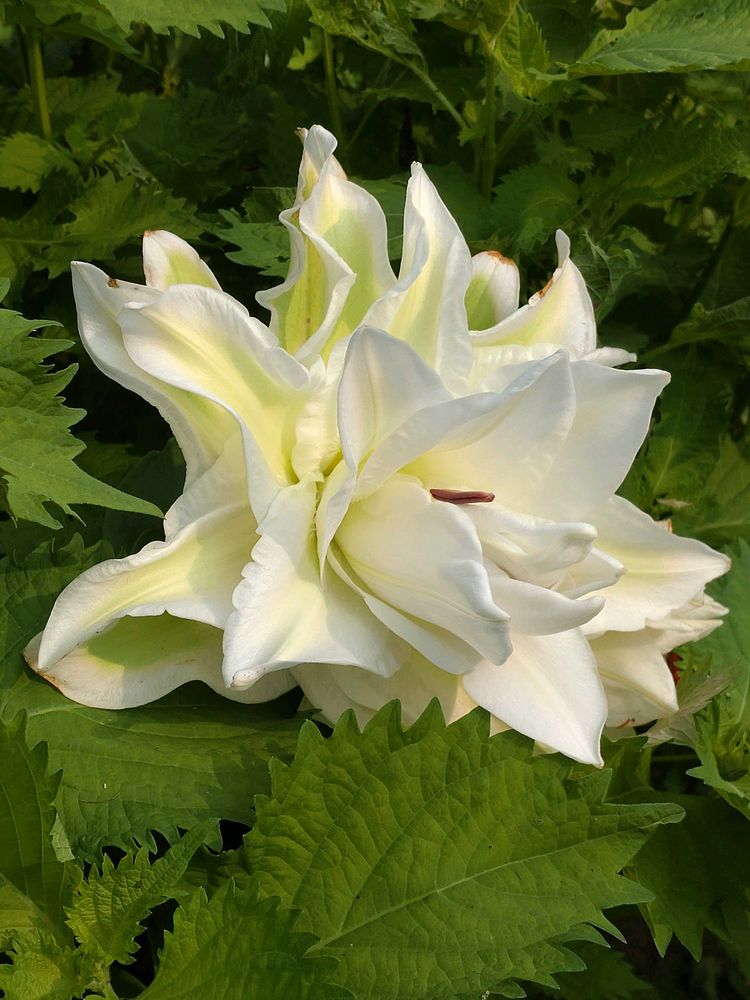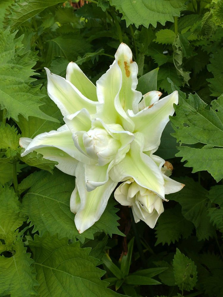 周りに去年の零れ種からの青紫蘇が大きくなり、このカサブランカの周りはウンサカ生えてきていて百合が隠れてしまいそうな勢いです!