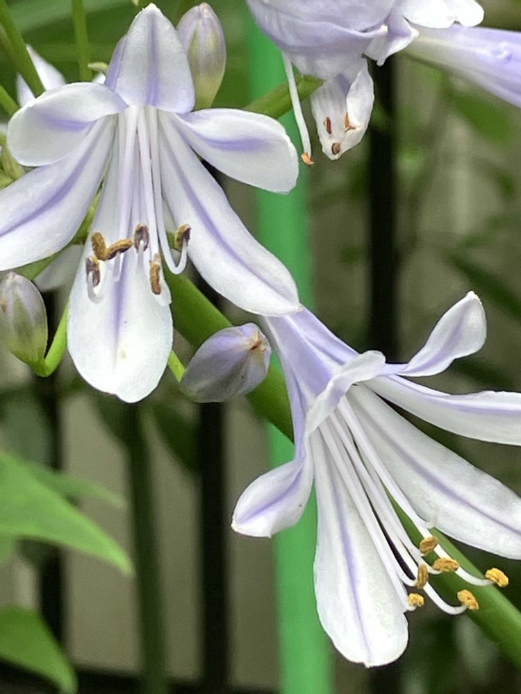 ①アガパンサス シャキッとした茎なのに暑さか肥料不足か寝てしまいます😅