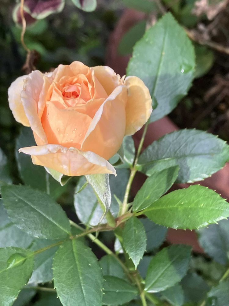 ④⑤ピエールドゥロンサール ポツポツ数えるほどですが小ぶりの花が咲いてくれました😊ちと暑さ負けな花の表情💦